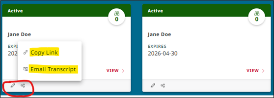 Select “Copy Link or Email Transcript” to send the transcript