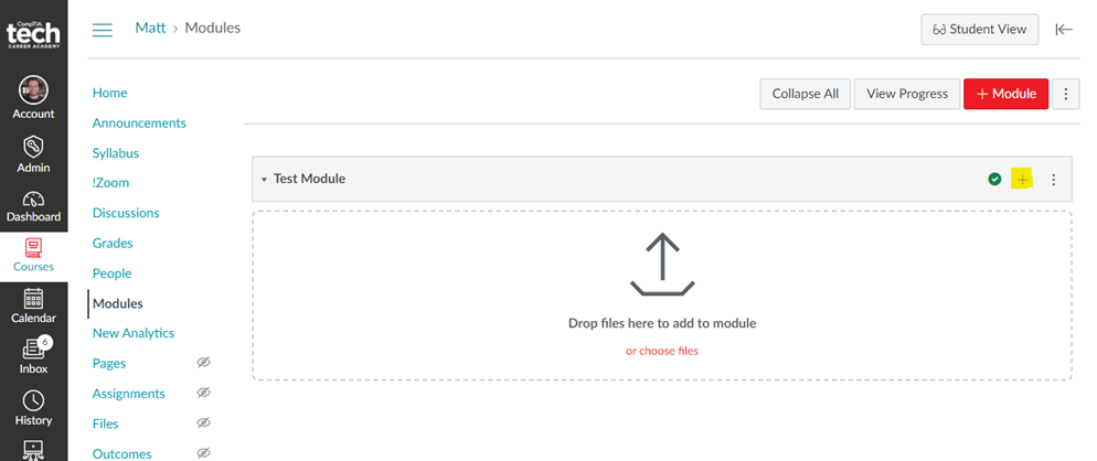 In your Canvas course, click Modules in the course navigation bar on the left.
