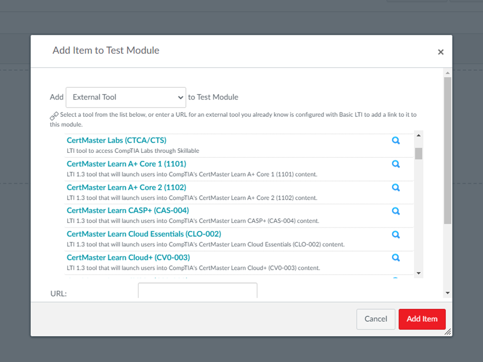 Note: The following requires that you have an LMS integration with CompTIA already configured in your Canvas instance. If you are interested in setting this up, please contact your Sales representative, who can get you in touch with our integration team. For more info on the configuration process, see our other articles on configuring our products in Canvas.