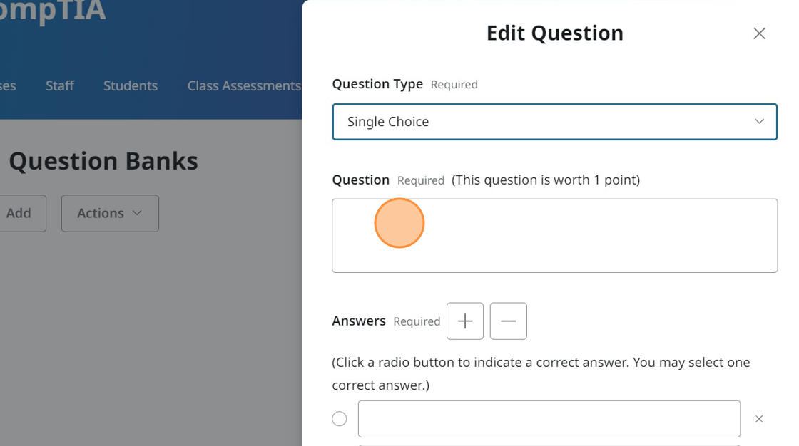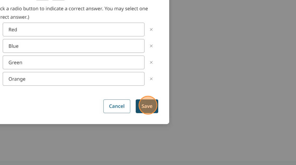 If you're doing a single choice question, you'll need to click the button to select what the correct answer should be.