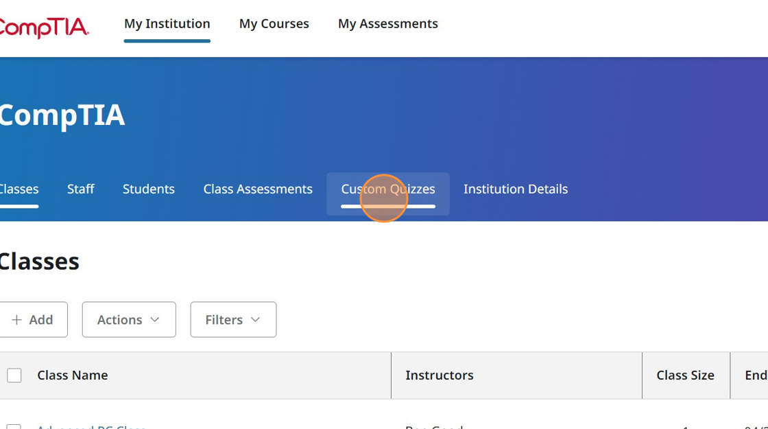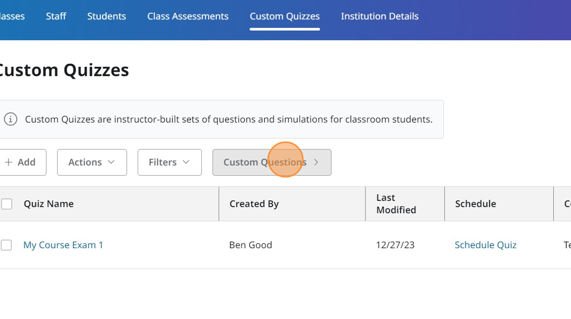 1. Click the Custom Quizzes tab.
