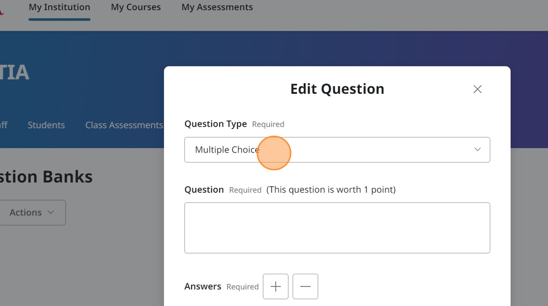 You may wish to enter your own questions for use in a custom quiz. You can do this by creating Question Banks.