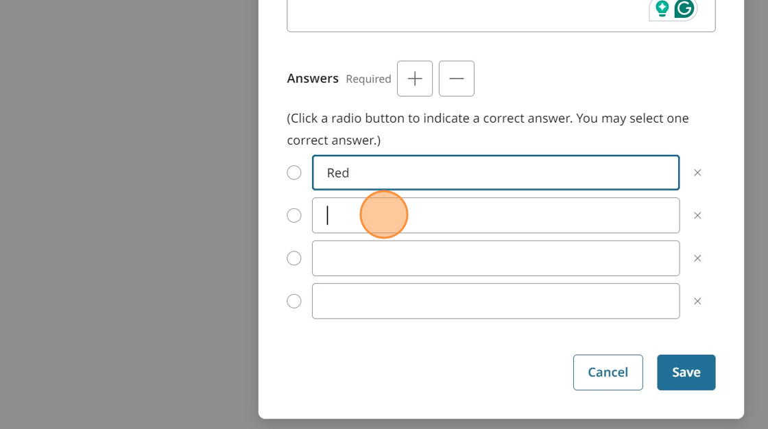 Click Add to enter additional questions. You can choose how many answers you want students to select from by using the plus or the minus signs.