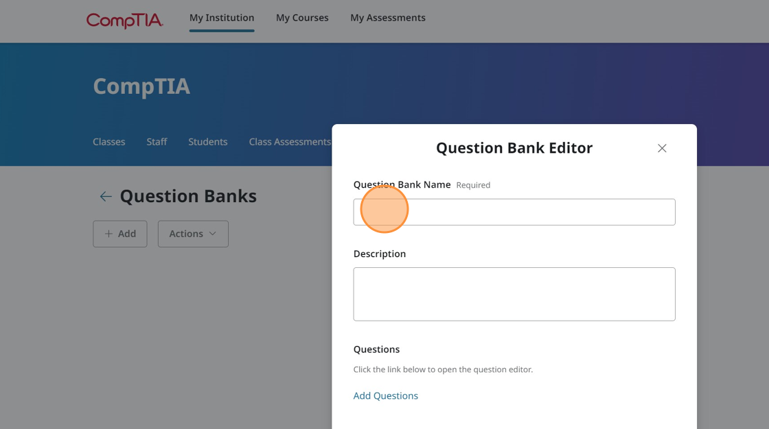 4. Enter a Question Bank name. You can enter a description which of course is optional.