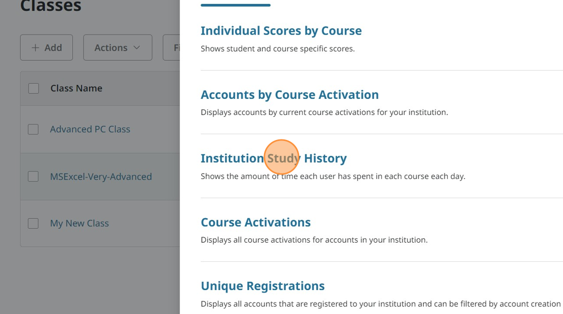There are a variety of reports to assist you with monitoring students’ progress at the organization level, including monitoring individual students’ scores, data by your different schools, as well as data by a specific instructor. In this video we will explore a few of those reports at the administrator level.