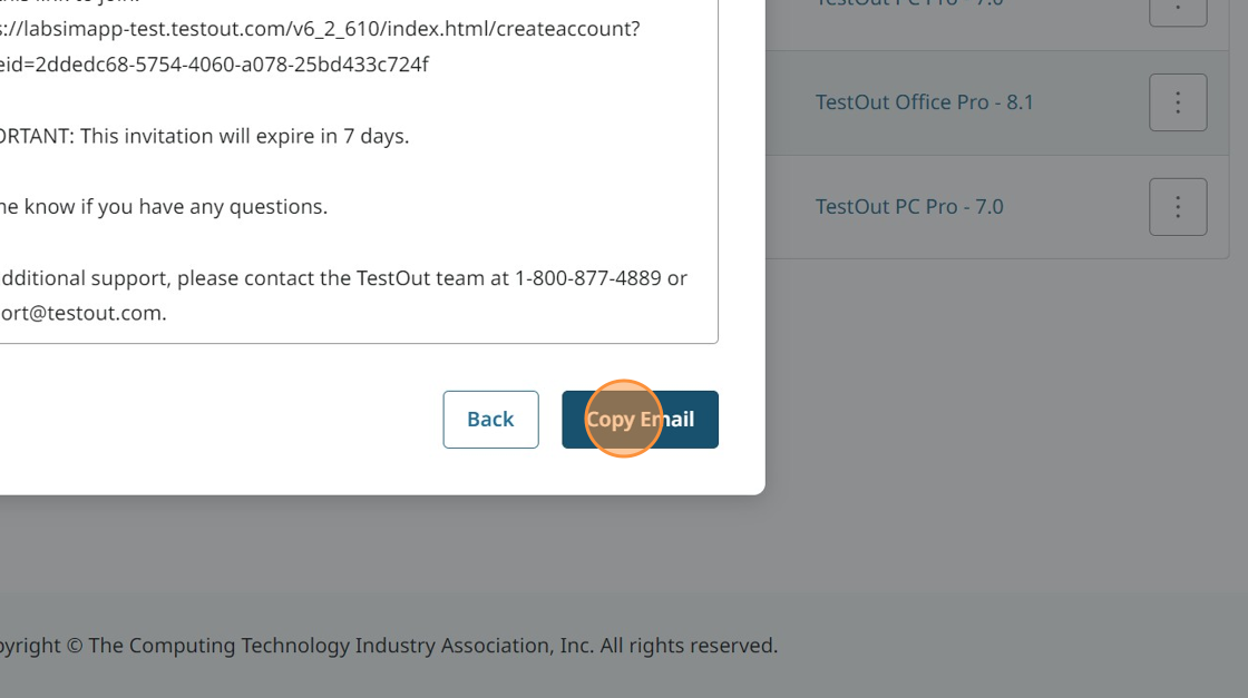 If by chance the number of students you entered was larger than the available licenses, a red message will appear to contact your CompTIA representative to purchase more licenses.