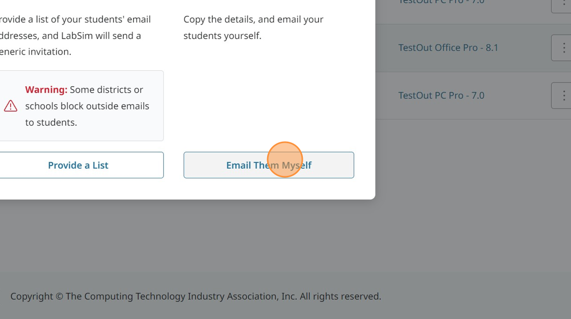 6. Now select Email Them Myself. Yes, there is another choice here, do NOT select that. You will have the option to either email or simply post the class link.