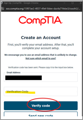 - Check your email inbox for the code. Enter the code in the Verification Code field to verify your email and complete account creation.
